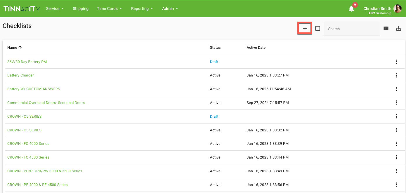 NOTE: To update an existing checklist, you must first create a Draft.