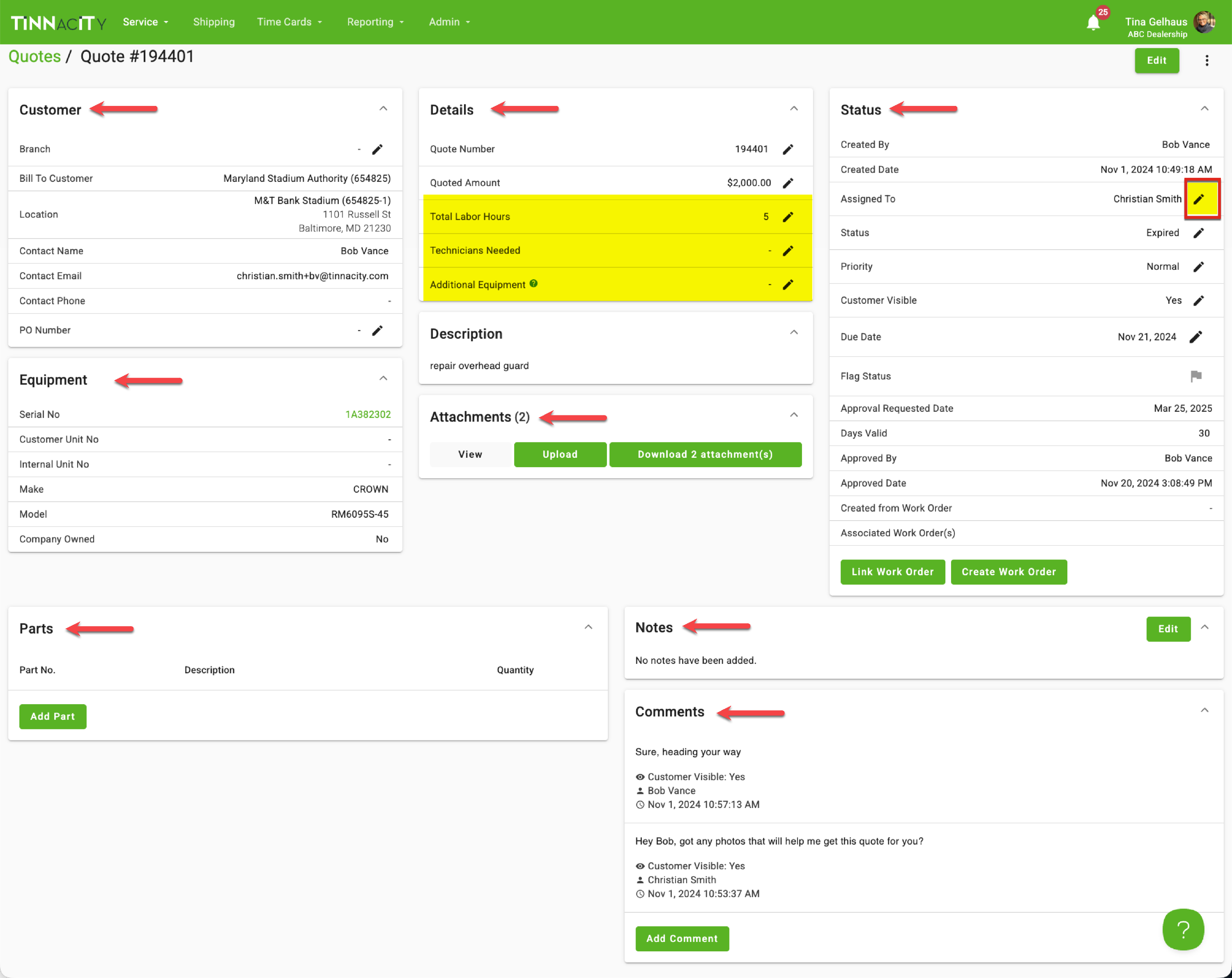 - Upload the quote document. Customers can access and review it within Tinnacity.
