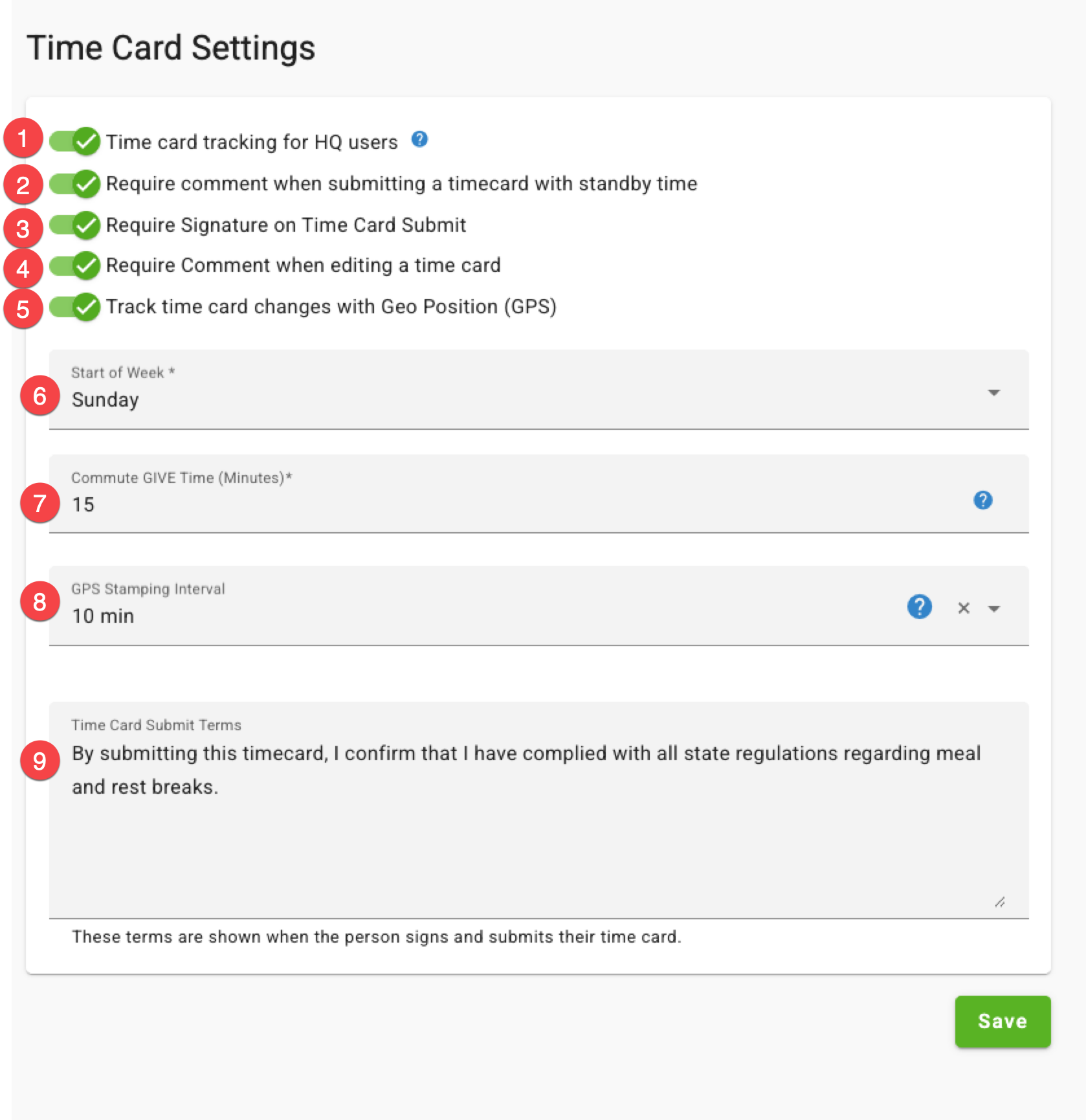 - Time card tracking for HQ Users: Activate this option to enable your back office to utilize Tinnacity's HQ as their timecard software.