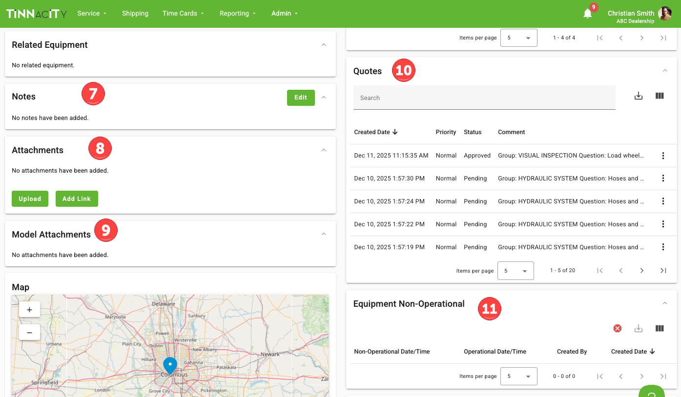 10) Quotes: Shows Quotes that are associated to the equipment.