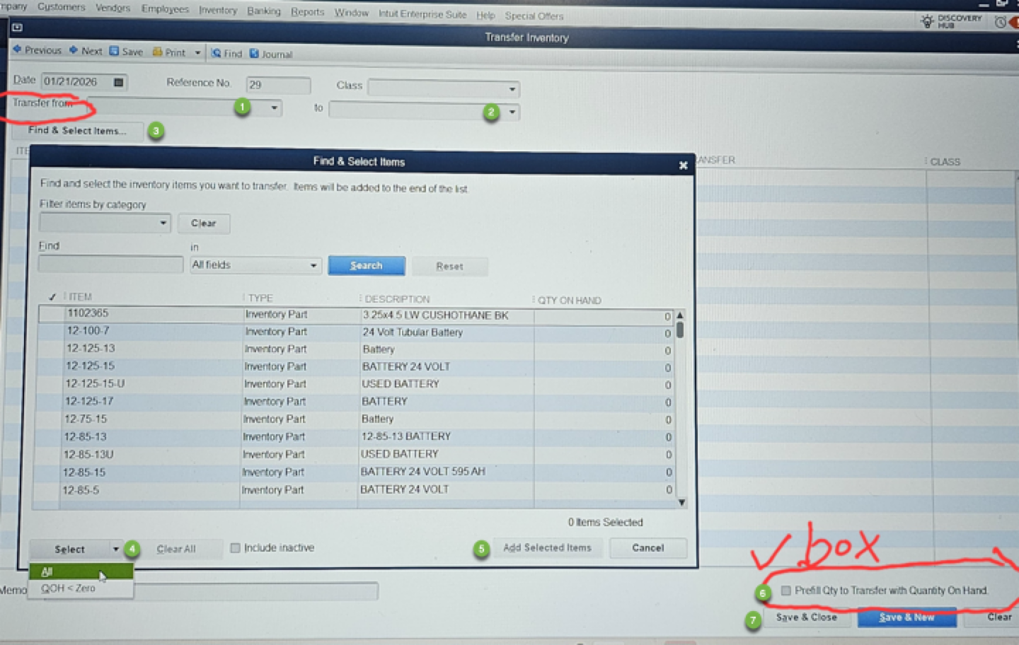 To transfer parts in QuickBooks Enterprise Advanced Inventory