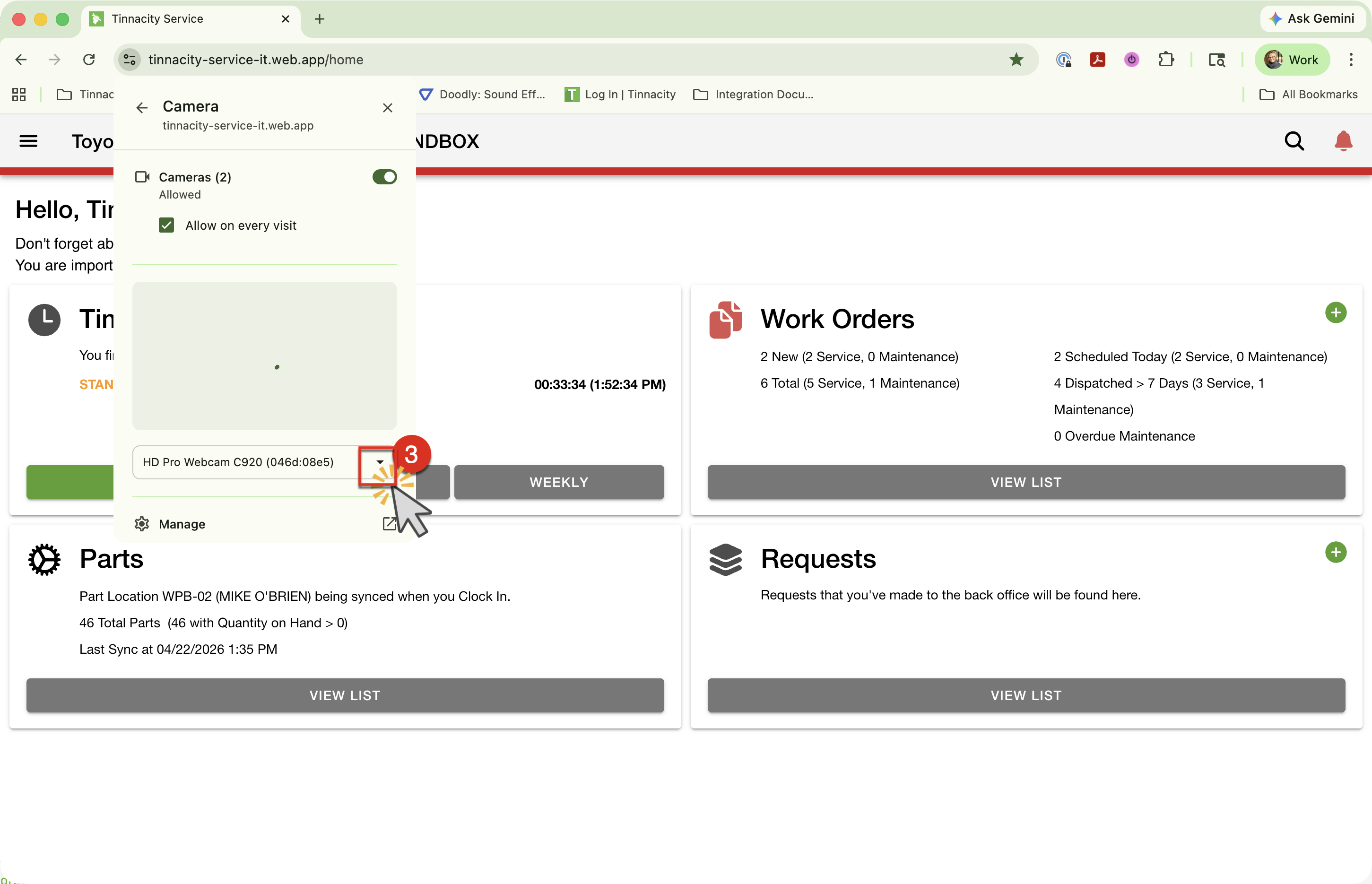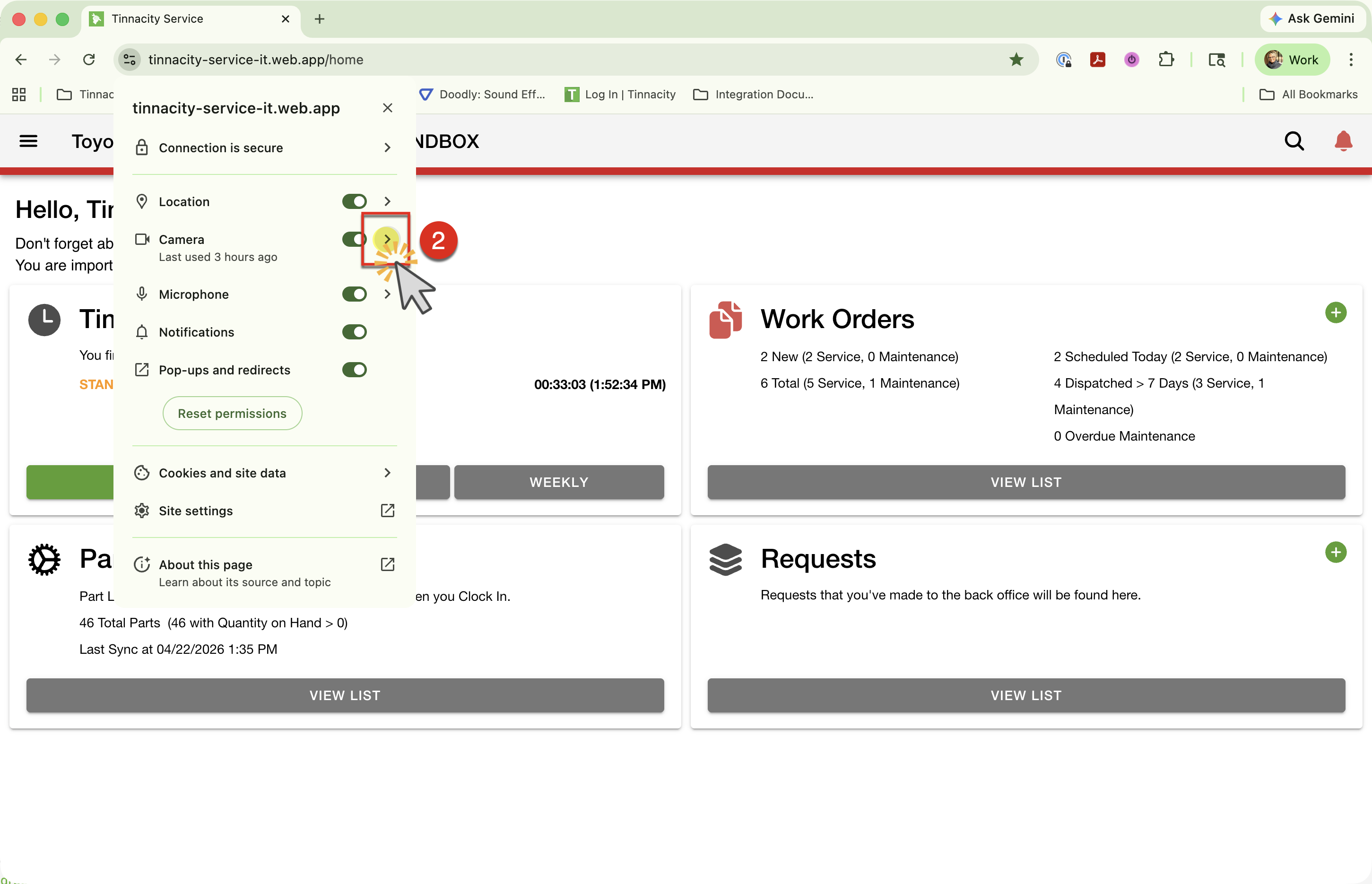To set the default camera, front or back, to use within the Service app follow the below steps:
