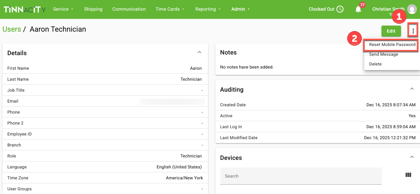 - Once on the details page, click on the three dots in the top right corner & select Reset Mobile Password